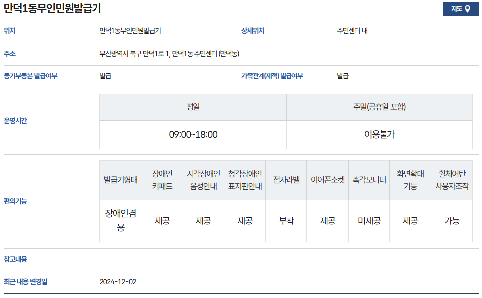 | 부산 동래구 무인발급기 위치 (0) | 2024.12.03 |